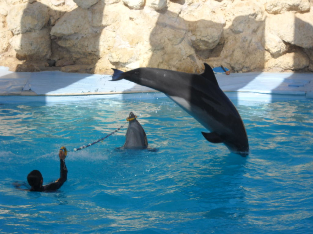 В 14ч часов вас заберет из отеля на автобусе (с кондиционером) ваш русскоговорящий гид. Ехать до Дельфинария 30 мин.